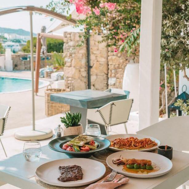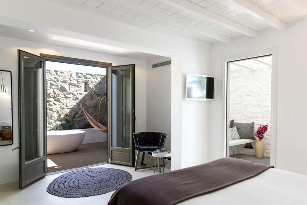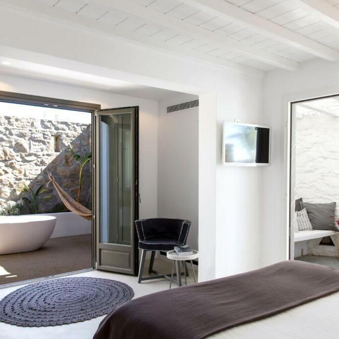 Отель сочетает традиционный кикладский стиль - белые стены, мягкие линии архитектуры и светлые интерьеры - с современным комфортом. На территории есть уютный бассейн, террасы для отдыха и стильные лаунж-зоны.