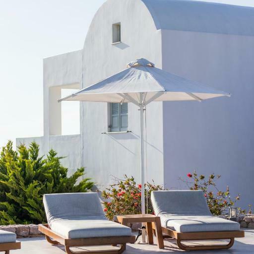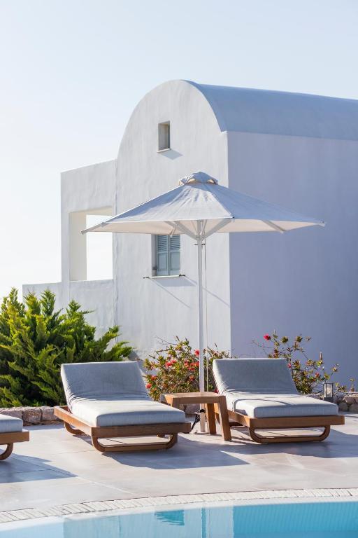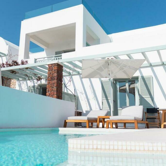 Просторные номера, многие - с собственными бассейнами, красивый SPA и мягкий сервис. Здесь особенно приятно встречать закаты Санторини.