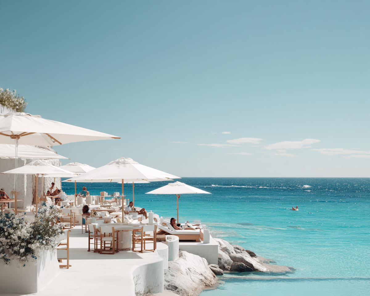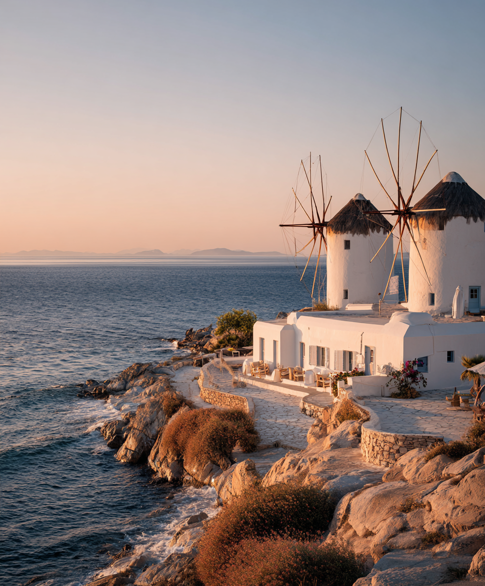 Белоснежная архитектура, дизайнерские детали, уютный бассейн и атмосфера лёгкой островной жизни - идеальная база для знакомства с Миконосом.